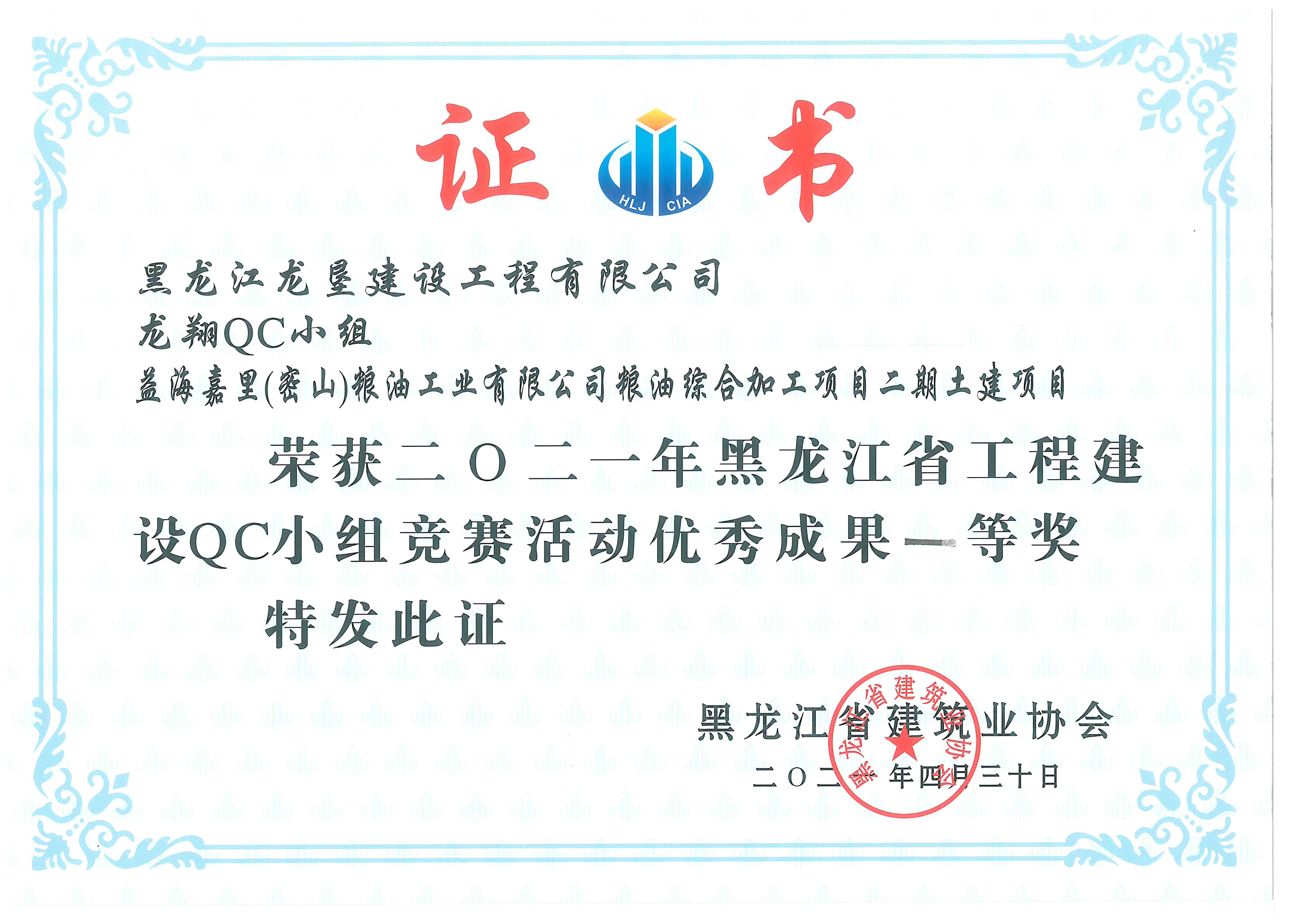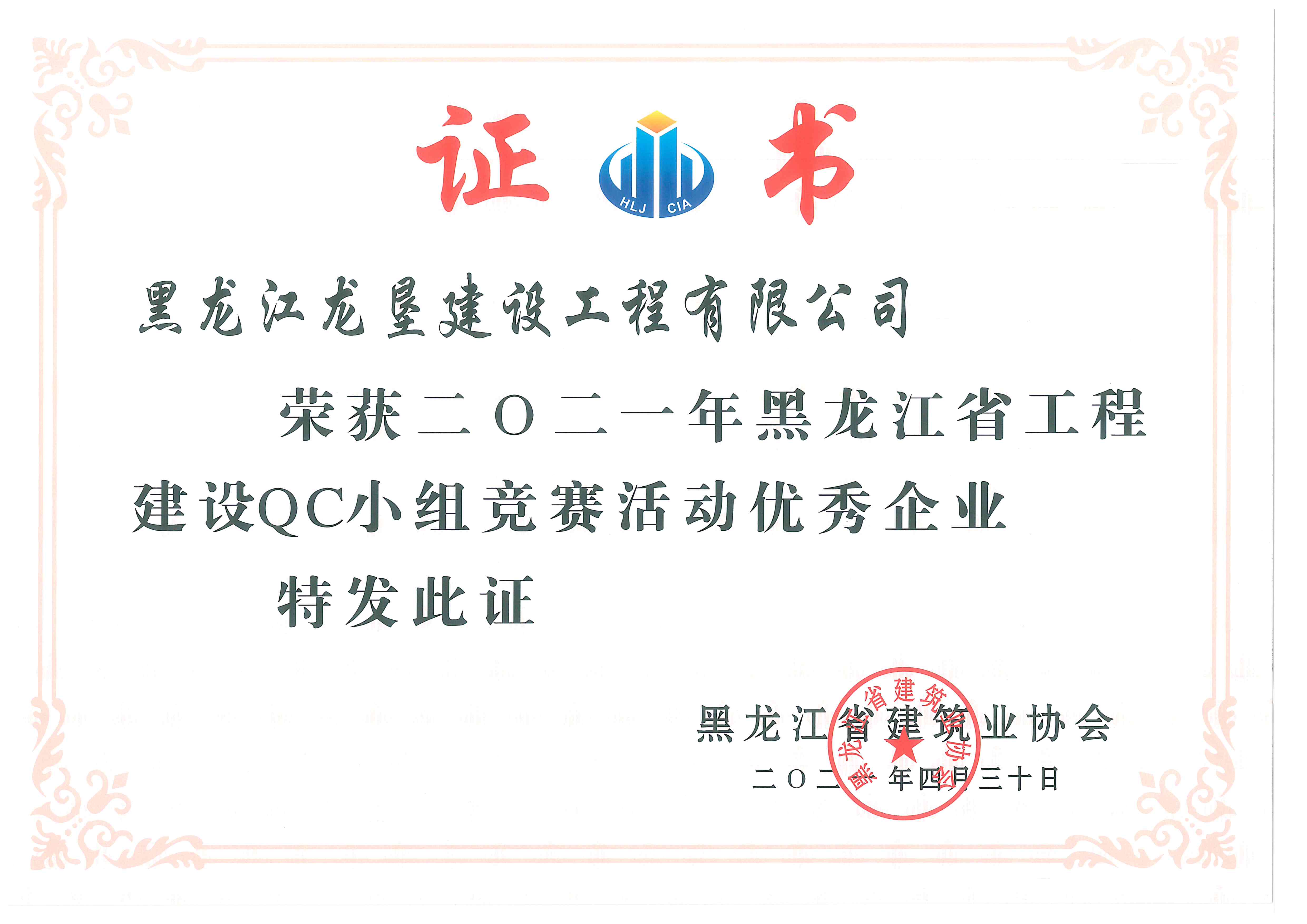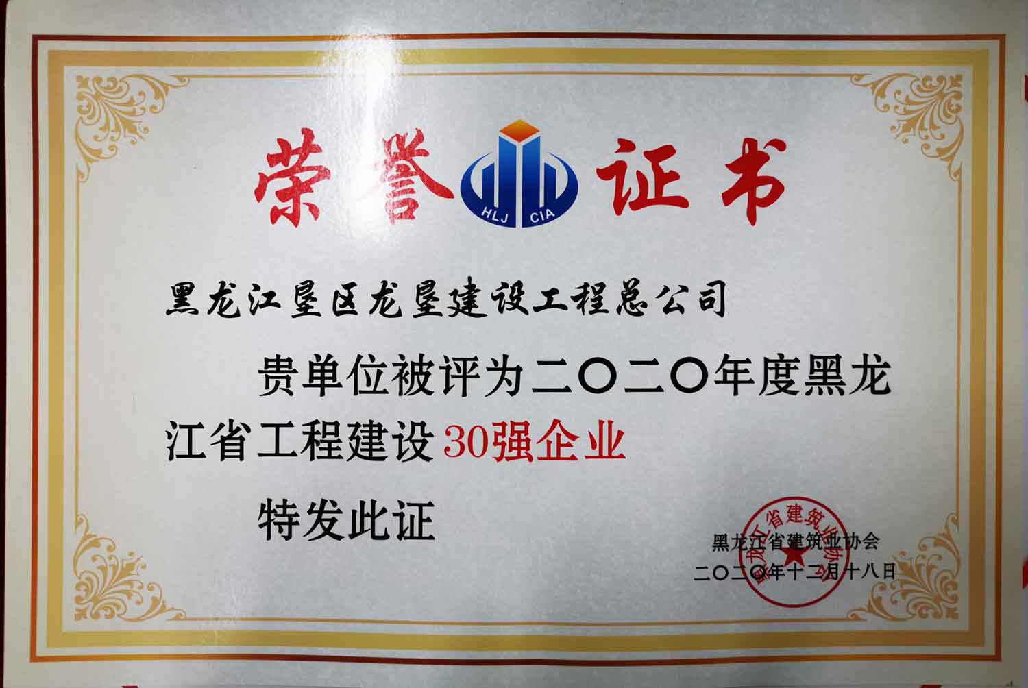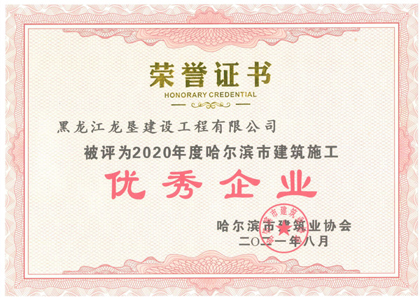 2020年度哈爾濱市建筑施工******企業(yè)榮譽(yù)